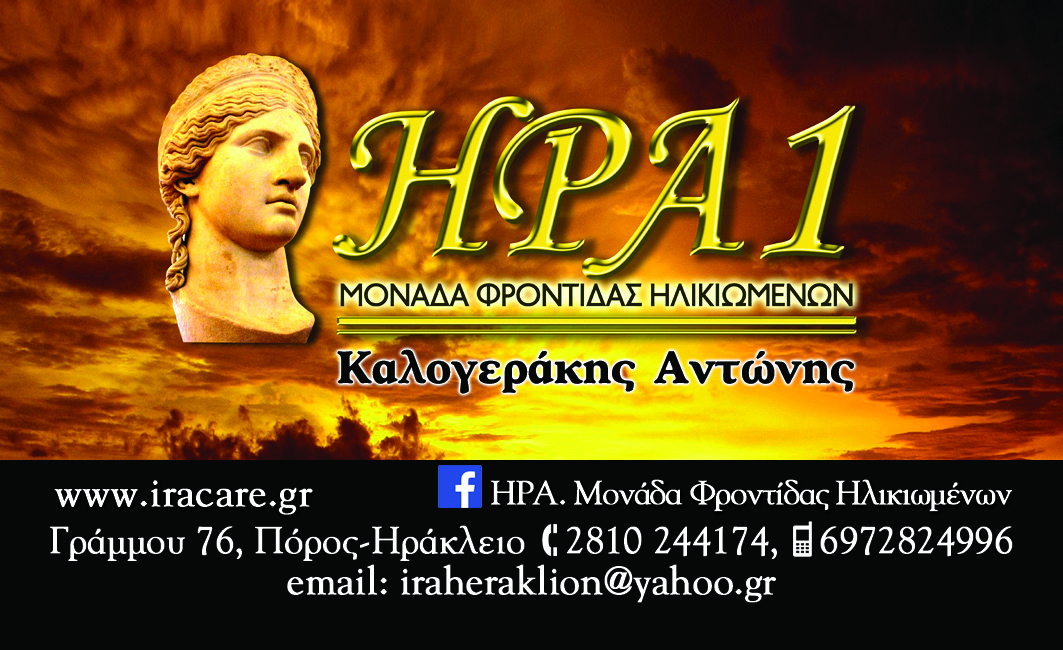 Οι Μονάδες Φροντίδας Ηλικιωμένων ΗΡΑ 1 και ΗΡΑ 2 λειτουργούν στον Πόρο και στις Γούβες αντίστοιχα με σκοπό την παροχή φροντίδας και την αναβάθμιση της Ποιότητας Ζωής ηλικιωμένων ατόμων που δεν έχουν την ικανότητα αυτόνομης διαβίωσης. Σε χώρους υψηλής αισθητικής, παρέχεται ένα υψηλό επίπεδο διαβίωσης στους ηλικιωμένους, που διασφαλίζεται από τις κατάλληλες υποδομές, το έμπειρο προσωπικό, και τη φιλοσοφία των Μονάδων μας. Υπό την αιγίδα του διευθυντή μας κ. Αντώνη Καλογεράκη, οι ηλικιωμένοι βρίσκουν στις Μονάδες ΗΡΑ μια δεύτερη οικογένεια γεμάτη αγάπη και σεβασμό για την Τρίτη Ηλικία.