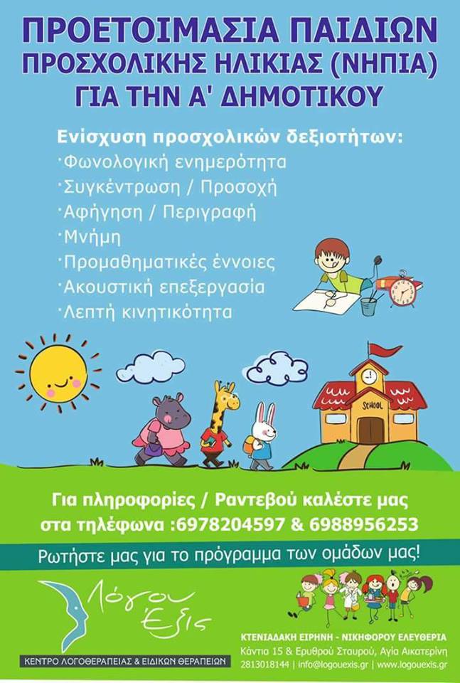Προετοιμασία νηπίων για την Α' τάξη Δωρεάν αξιολόγηση στο χώρο μας.